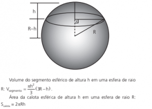 De modo análogo ao volume da esfera, podemos calcular o volume do segmento esférico de altura h subtraindo um tronco de cone de altura h, de um cilindro de raio R e também altura h.