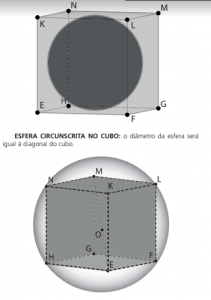 ESFERA INSCRITA NO CUBO: o diâmetro da esfera será igual a aresta do cubo.