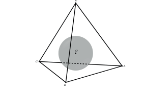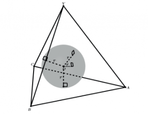 Ao traçarmos as distâncias do centro O da esfera as 4 faces VAB, VAC, VBC e ABC do tetraedro regular teremos todas essas 4 distâncias iguais ao raio da esfera (r).