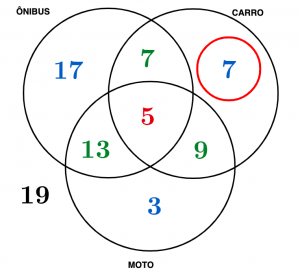 Sendo assim temos apenas 7 pessoas que andam SOMENTE de carro (destacado na figura abaixo).