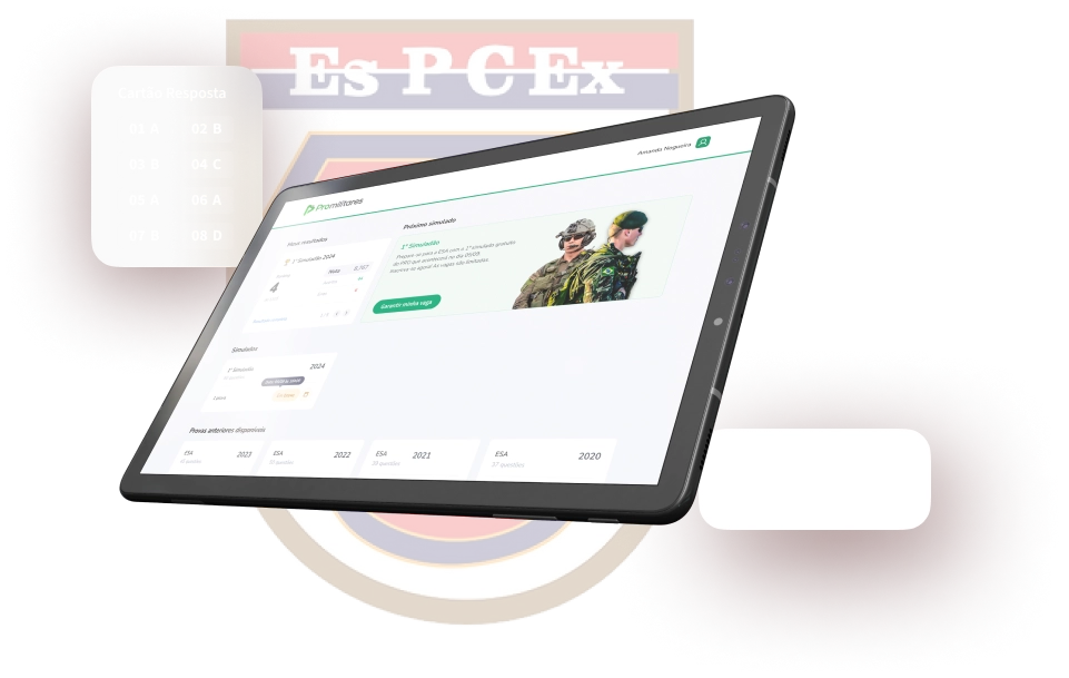 Faça um simulado realista e gratuito, igualzinho à prova da EsPCEx, e veja como você se sai de verdade. Vem se preparar e papirar na prova!